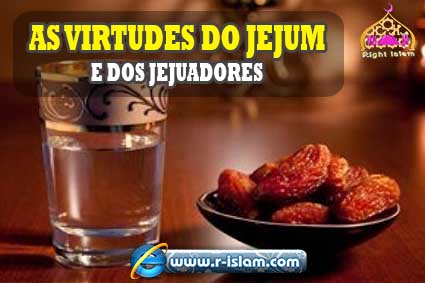 Por isso, Allah, designou muitas virtudes para o jejum e para os jejuadores. Ele disse: “Se jejuardes, será preferível para vós, se quereis sabê-lo” (2:184). Ele também disse: “Comei e bebei com satisfação, pelo bem que propiciastes em dias passados!” (69:24), que são os dias do jejum, como os sábios nos explicam. Conta-se que os jejuadores, sairão de seus túmulos, e serão reconhecidos pelo cheiro de suas bocas, pois será mais agradável do que o cheiro do almíscar. Eles serão levados para o Paraíso e o adentrarão pela porta chamada Raian. É uma porta pela qual só entrarão os jejuadores. Quando lá se instalarem, ser-lhes-ão trazidos os alimentos e as bebidas seladas com almíscar. Um arauto lhes clamará: “Comei e bebei com satisfação, pelo bem que propiciastes em dias passados!” Allah, também disse: “Quanto aos … jejuadores e às jejuadoras, aos recatados e às recatadas, aos que se recordam muito de Allah e às que se recordam d’Ele, saibam que Allah lhes tem destinado a indulgência e uma magnífica recompensa” (33:35). O Profeta (que a Paz e a Bênção de Deus estejam sobre ele) disse, repetindo as palavras de seu Senhor: “Todo ato do filho de Adão é dele, menos o jejum. Ele é Meu e Eu recompenso por ele. O jejum é um escudo. Se alguém estiver jejuando, não deverá dizer obscenidades, nem se irritar. Se alguém discutir com ele, deve dizer-lhe: ‘estou jejuando’. Por Aquele em cujas mãos está a alma de Mohammad, no Dia da Ressurreição, o cheiro da boca do jejuador será mais agradável para Allah do que o cheiro de almíscar. O jejuador tem duas alegrias, quando quebra o jejum ele fica satisfeito com a quebra do jejum, se morrer, seu Senhor fica satisfeito com o seu jejum.”
